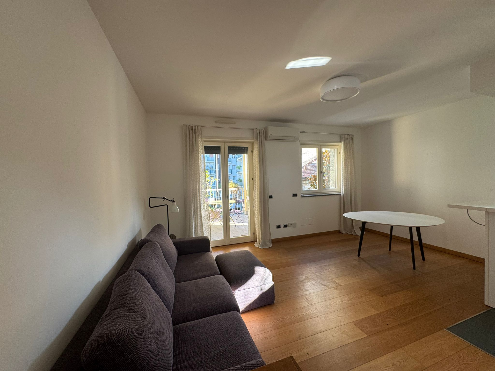 via Pellizza da Volpedo – Monte Rosa adiacenze In piccola palazzina completamente restaurata nel 2012, proponiamo luminoso e silenzioso appartamento posto al secondo piano, unico al piano, di circa 80 mq oltre terrazzo di 10 mq al piano. L’immobile è composto da: ingresso, ampio soggiorno con cucina a vista e accesso diretto al terrazzo, camera matrimoniale, cameretta, bagno finestrato, comodo locale lavanderia e balconata. Ottime condizioni interne: riscaldamento autonomo a pavimento di ultima generazione, aria condizionata, parzialmente arredato. Libero subito. Canone annuo € 24.000 oltre € 2.800 di spese condominiali.